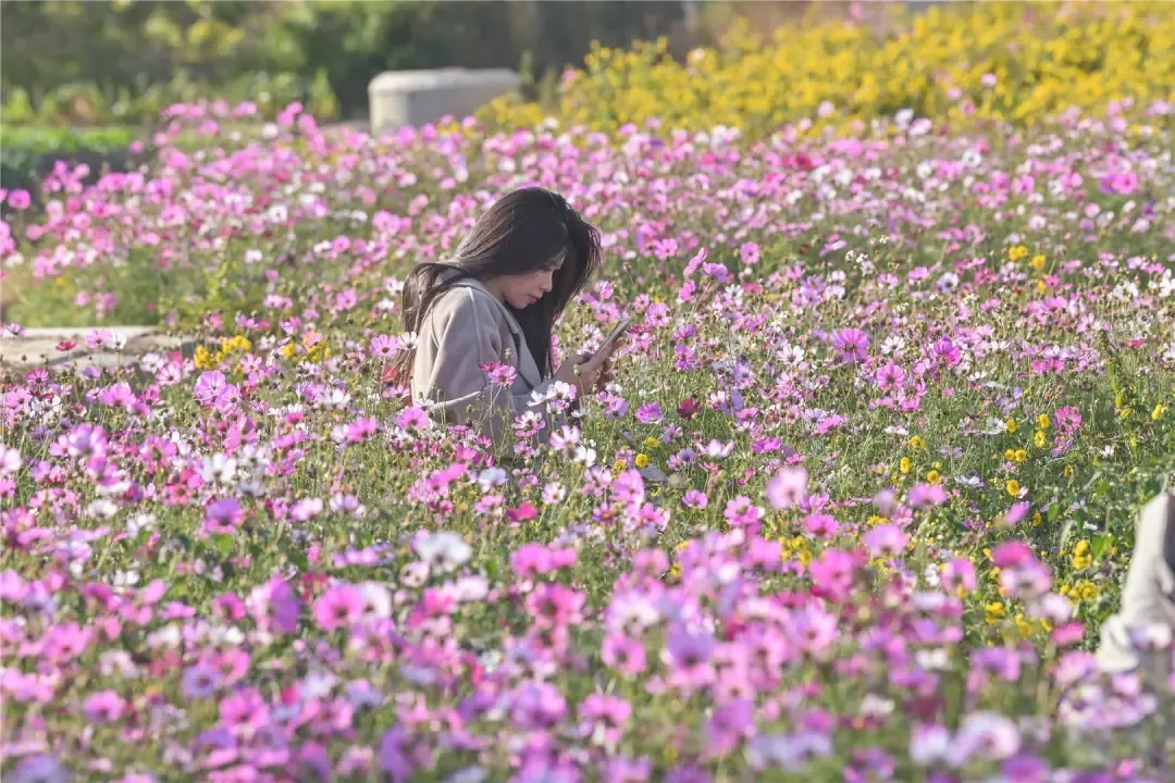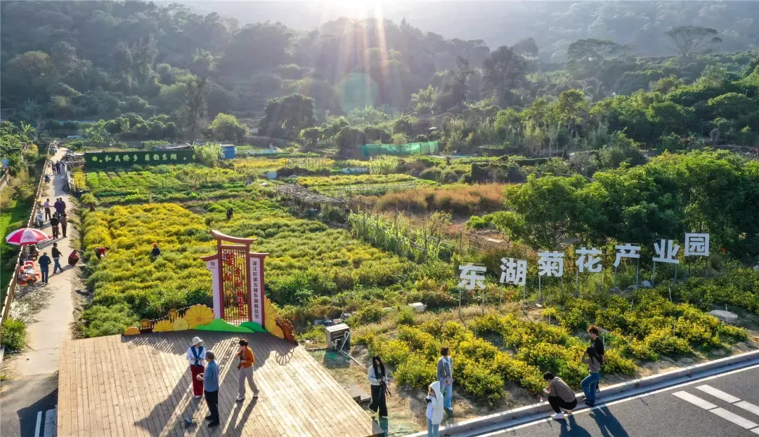 从昔日的田间作物到今日的文旅 IP,东湖菊花见证着侨村的蝶变。如今,这片双色花海不仅是视觉的盛宴,更是乡村振兴的生动注脚 —— 古村落与新花海共同绘就宜居宜业的乡村图景。濠江的冬天,从不是萧索的。东湖村把黄菊酿成酒,把格桑裁成笺,让每一缕晚风、每一朵花,都写成了诗 —— 不必寻远方的浪漫,这金粉撞怀的花田,就是最治愈的冬日梦乡。