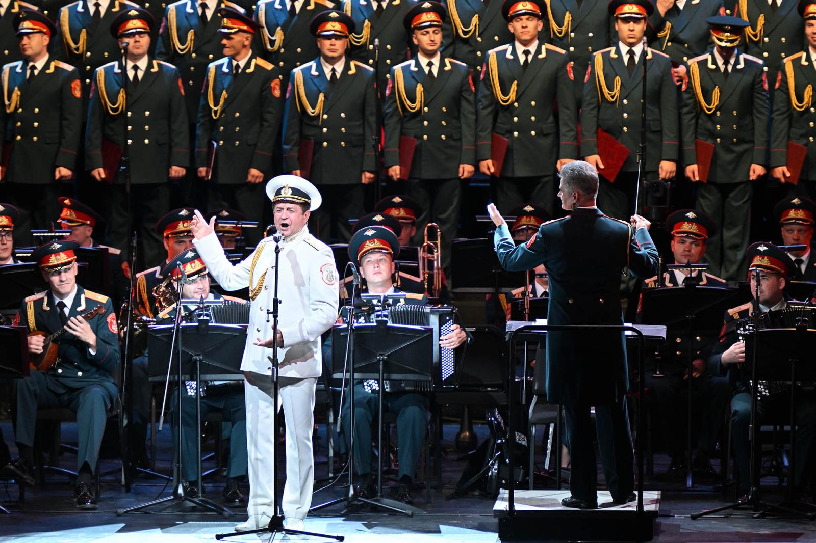 包括《神圣的战争》在内,红旗歌舞团在北京的6场演出以多种编排形式囊括了超70首作品。在团长、艺术总监根纳季·萨切纽克的带领下,合唱团、舞蹈团、乐团携手十余位俄罗斯国宝级歌唱家轮番亮相,用连串经典展示着这支俄罗斯历史最悠久、规模最宏大、级别最高的军队歌舞艺术团体的赫赫盛名:俄罗斯“人民艺术家”瓦基姆·阿纳涅夫被称作“卡林卡先生”,几十年来,他演绎的《卡林卡》风靡全球,在北京舞台上,他又一次带来了这首代表作,温暖澄净的歌喉、自如转换的美妙长音令人叫绝;另一位俄罗斯“人民艺术家”瓦列里·伽瓦与合唱团配合默契,把民歌《沿着彼得大街》表现得明亮轻快,感染力十足……此外,舞蹈节目《哥萨克骑兵》《焦尔金就在我们中间》《水兵舞》《俄罗斯舞》热烈活泼,敏捷高超的舞步急速变换,鲜艳的民族服饰如同盛放的花朵翻飞旋转,数度将气氛推向高潮。