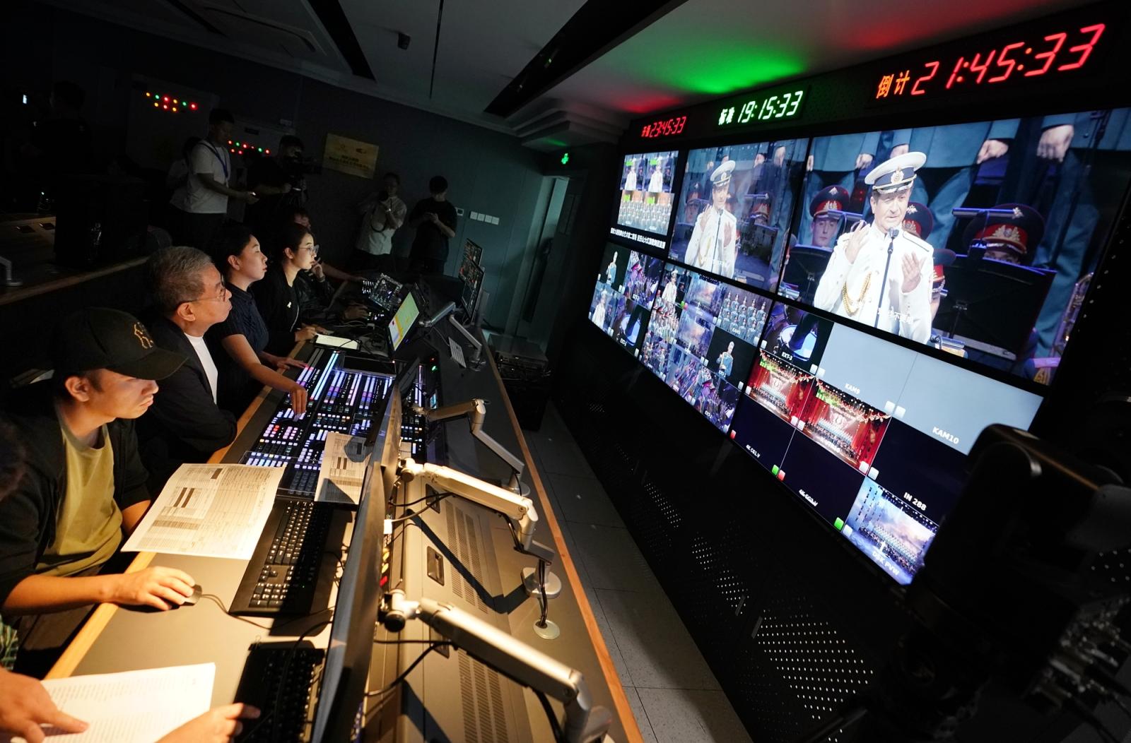 国家大剧院导播间里,工作人员密切关注镜头画面。北京日报客户端记者 方非摄